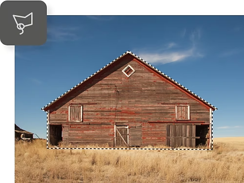 ปรับวิธีการเลือกบริเวณแบบอิสระด้วยเครื่องมือเลือกพื้นที่อิสระอัตโนมัติหรือเครื่องมือ Polygonal Lasso เครื่องมือแรกใช้ AI เพื่อพยายามยึดเส้นเข้ากับขอบของวัตถุ ในขณะที่เครื่องมือหลังจะสร้างรูปร่างหลายเหลี่ยมโดยการเปลี่ยนเส้นอิสระของคุณให้เป็นเส้นตรง