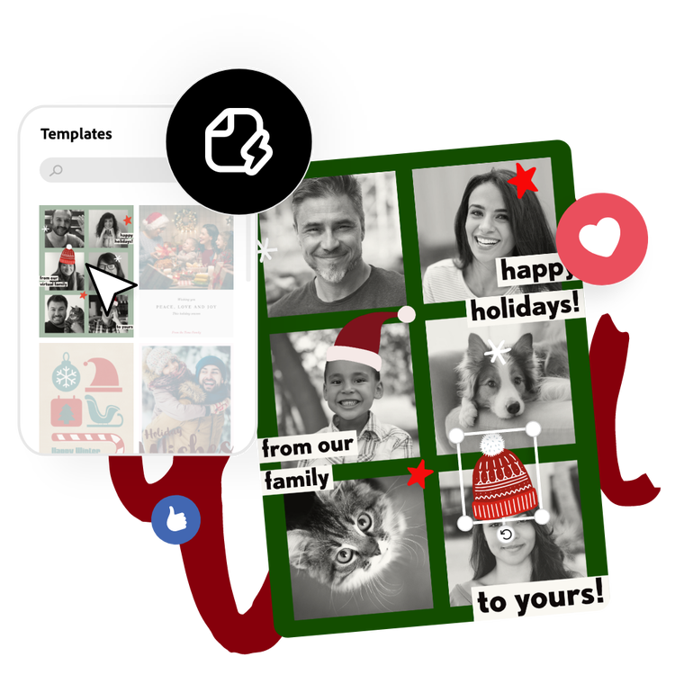 Adobe Express 節日賀卡製作工具會引導您完成每個步驟,將您腦海中的構想輕鬆化為實際作品。設計完成後,您可以透過電腦下載並自行列印,或直接向 Adobe Express 訂購印製好的節日賀卡,並選擇配送到府。製作一張自訂節日賀卡,向客戶表達您一整年的感謝與心意,讓他們對您留下深刻印象。