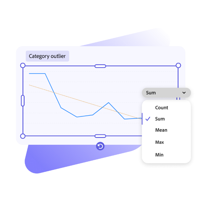 透過易於閱讀的分區圖,呈現資料隨時間變化的趨勢。您可以使用 Adobe Express 的 Gen Chart 附加元件,將資料轉化為精美的圖表,並透過 AI 分析快速獲得有價值的分析見解。您可以使用這個實用的附加元件,追蹤趨勢、識別異常並進行預測。