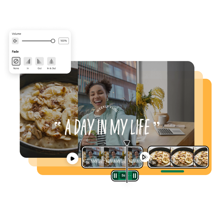 音效為影片、網路廣播和社交媒體片段增添了沉浸感。使用 Adobe Express,你可以輕鬆使用超過 15,000 種 Adobe Stock 音效為社交限時動態、TikToks 和影片確定氛圍,並輕鬆將其應用於關鍵時刻或轉變。無需經驗。