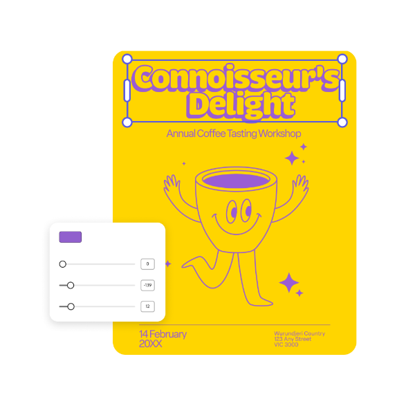 數十年來,大部分的文字處理器都能為文字加上陰影 - 但這絕非一款基本的文字陰影工具!使用 Adobe Express,您可以著手自訂文字陰影的每個細節。使用滑桿變更模糊度,以及陰影與文字的角度和距離。現在,您可以獲得精確的文字陰影效果,無需受限於現有的預設選項。
