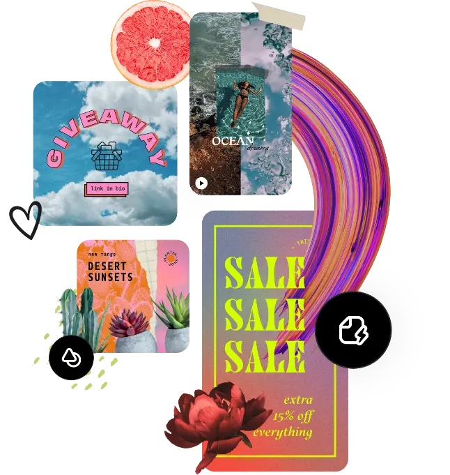 將您親手設計的影像運用在美觀傳單、社群媒體貼文、專輯封面、個人檔案相片或其他設計品上。我們有豐富的模板庫供您選用,接著再加上其他設計資產、字體、圖示或 GIF 圖檔編輯出個人的影像。這裡有無限的創作機會,讓您的設計作品變得卓然出眾。