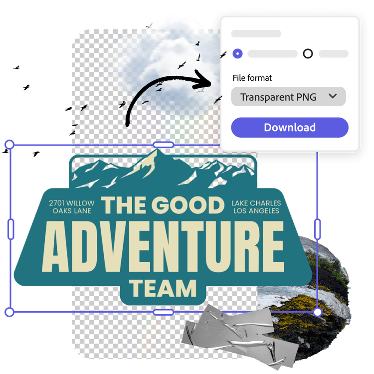 將無背景的新標誌下載為 PNG 檔案,然後儲存、與他人共用,或在 Adobe Express 中繼續編輯。