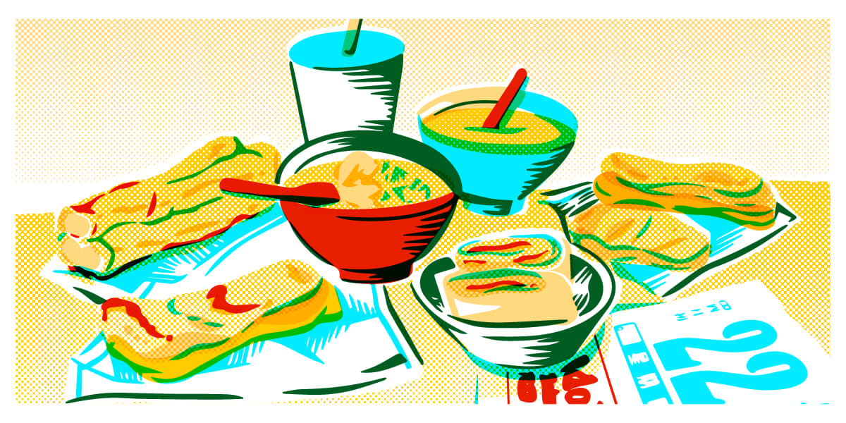 用「透明度面板」的「漸變模式」仿製疊印效果的插畫明信片