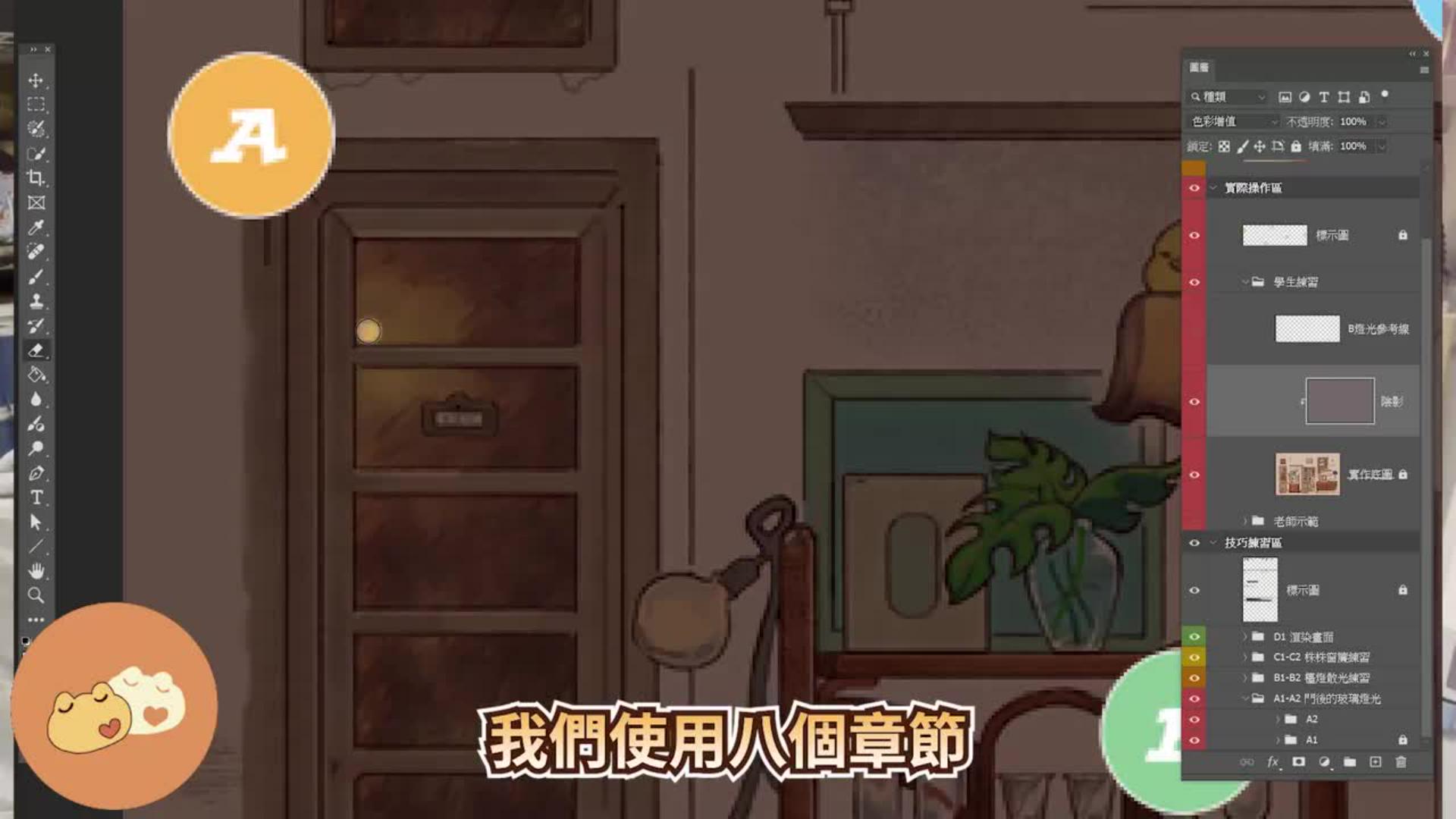 • 玻璃燈光:運用「色彩增值」圖層模擬物理透光,搭配橡皮擦工具刻畫高光細節。