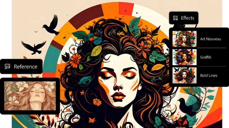 Найновіші інструменти для створення зображень, відео, аудіо й векторних зображень доступні в програмі Firefly.