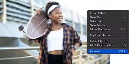 У вікні стрічки клацніть зображення правою кнопкою миші або виділіть файл зображення і натисніть клавішу Control, а потім виберіть «Удосконалити» в контекстному меню. - Застосуйте надвисоку роздільну здатність.