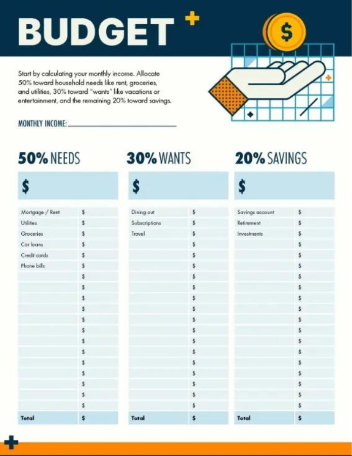 Better yet, share your budget with your family to get everyone on board. You can also teach your kids how to manage money with a simple 50/30/20 budget template – a valuable skill for the future.