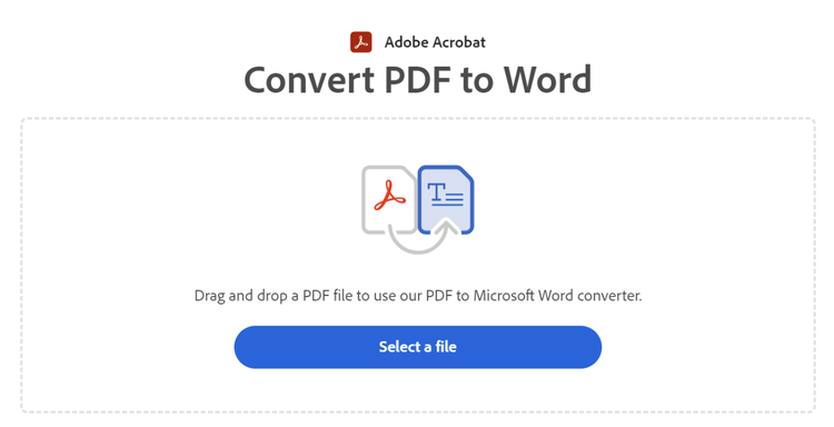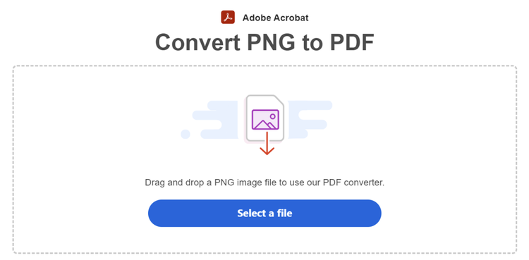 1. To change PNG to a Word Document, you’ll first need to convert the PNG to PDF using the Adobe free online tool. Click Select a file or simply drag the file you wish to convert into the drop window.