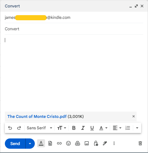 - Email your Kindle. Create a new email with Convert as the subject line. Attach your PDF to this email and address it to your Kindle’s personal email. Send your PDF to your Kindle.