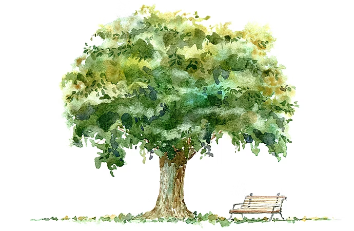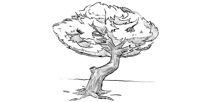 If you want to go beyond the basic trunk and bush-like foliage, you’ll want to notice how different trees look and model yours on a specific type of tree. For example, a pine tree will require different crown drawing techniques than an oak tree. An old tree might have deeply defined trunk details and gnarls while a young tree should have a cleaner, less marked trunk. Find inspiration for any type of tree from the reference photos available in Adobe Stock.