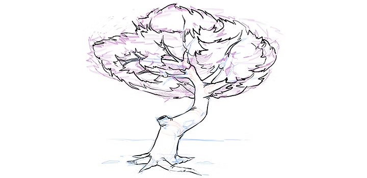 Sketch a rough outline for the foliage of your tree, also called the tree crown. “Introduce a jitter or some undulations to your lines. That’s going to give your tree a bit more of a natural feel,” says Nugent. You don’t necessarily have to draw individual leaves for your tree to look realistic. Make sure that you vary the weight of your strokes as you go. Brushes in digital drawing apps like Adobe Fresco are pressure sensitive, so you can easily switch up the weight and thickness of your strokes.