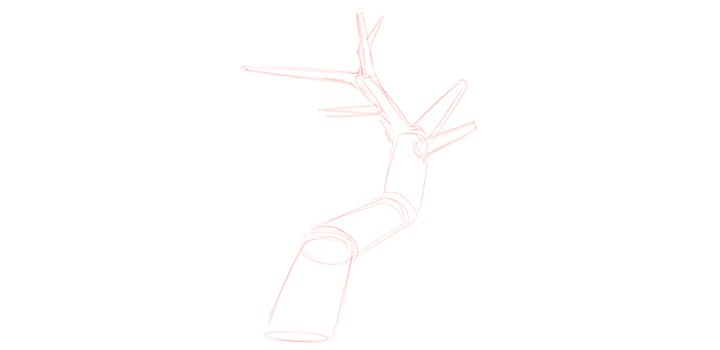 In their most basic shape, trees are cylindrical forms. Draw cylindrical shapes over your structural lines to fill in the roots, trunk and main branches for a more 3D appearance. “It’s always helpful to look at real trees to understand how the branches work,” says Nugent. “Typically with branches, you’ll find that the tree trunk is thicker and there’s a tapering that happens as you move further into the branches of the tree.”