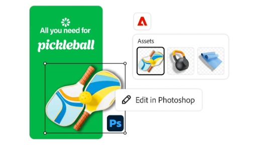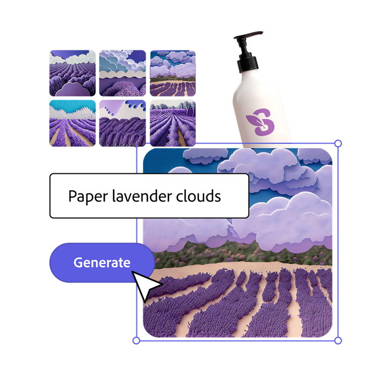Resize assets for different channels in a click and translate text in seconds. Quickly insert or remove objects and make backgrounds disappear.¹