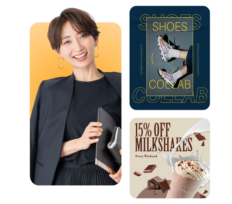 Promote your business and engage followers with custom social media ads made in Adobe Express. Choose from trendy templates to create eye-catching ads featuring your logo, branding, and fonts in just a few taps. Easily resize your ad for platforms like Instagram, TikTok, and Facebook. Create professional-quality ads in minutes with Adobe Express on your side.