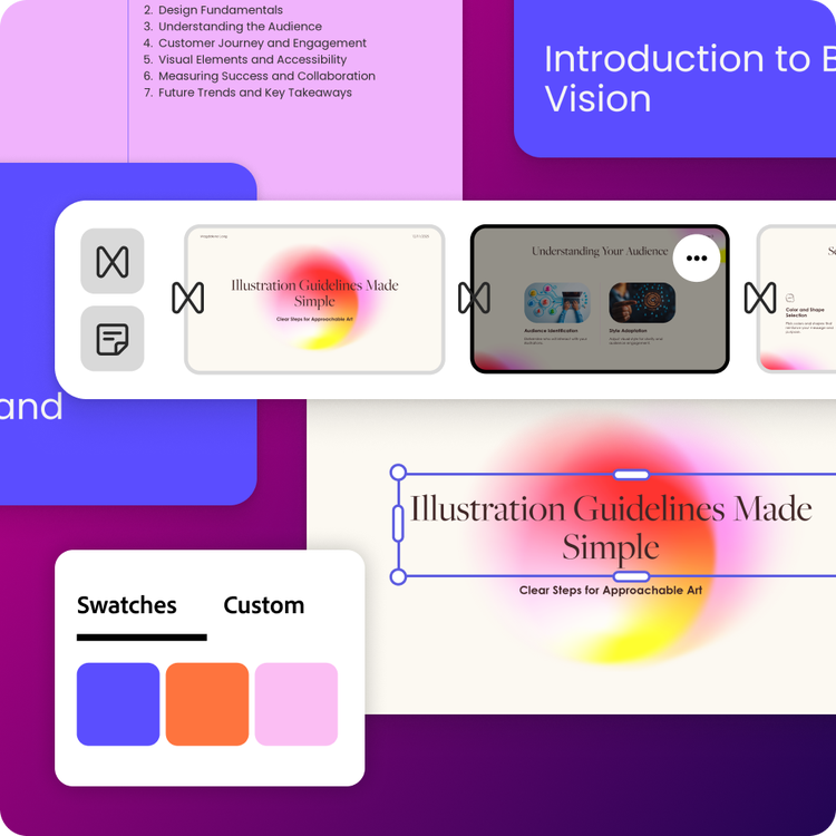 Quickly turn an existing file into a great first draft. Describe your idea and the presentation maker will generate editable slides ready for your next pitch. Collaborate with colleagues in real-time to bring your presentation over the finish line.