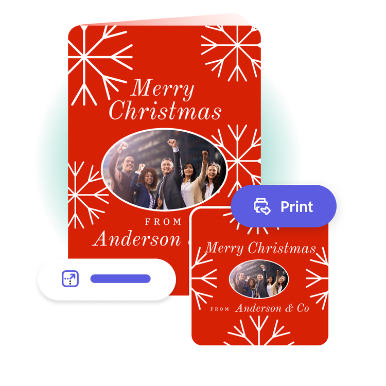 Download your new Christmas card photo as a PDF, JPG, or PNG file to share anywhere. Or, if you’re creating your card using the US, UK, Australia, or Canada desktop version of Adobe Express, you can order high-quality prints in the full editor and get it shipped to your door.
