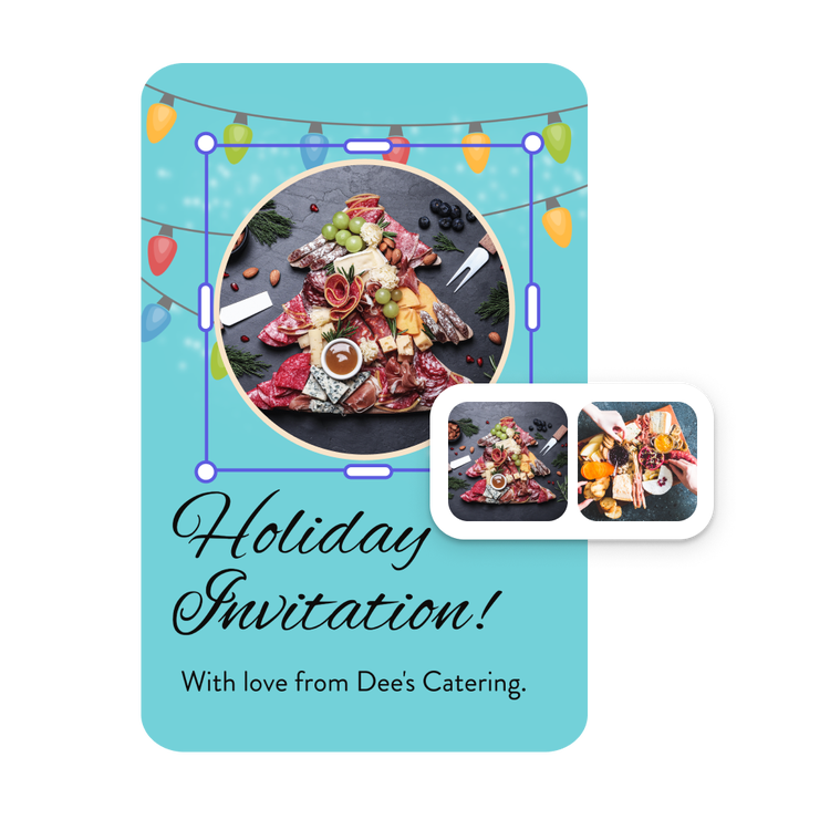 Personalized Christmas card photos beat store-bought cards any day. Whether you’re sending a card showing off your kids visiting Santa Claus or photos of your amazing charcuterie trays you’re advertising, a one-of-a-kind card made with Adobe Express will wow your recipient. When you launch the Christmas card photo maker, you’ll have thousands of templates to choose from. Use handy filters to sort through them and then customize with your own text and, most importantly, your photos.