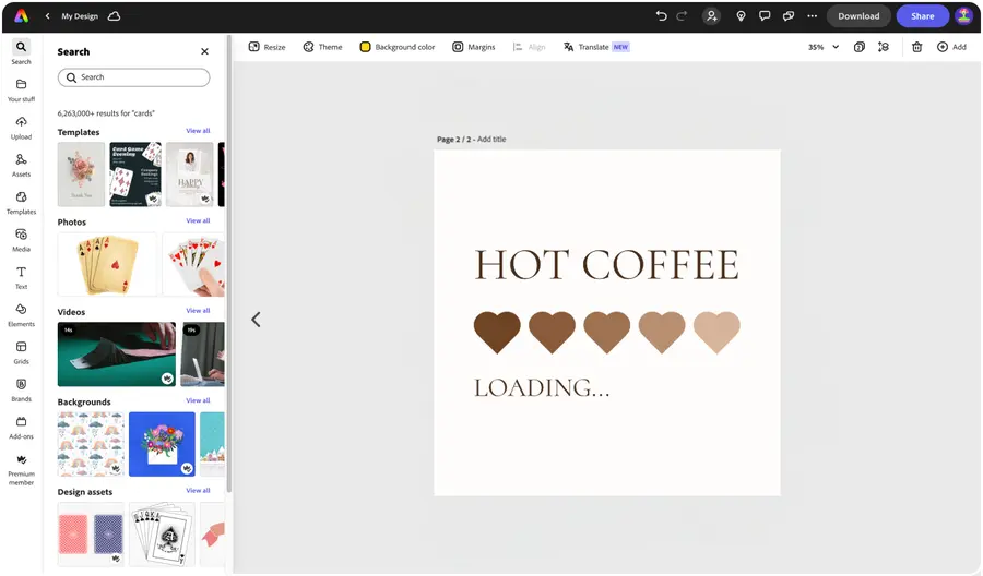 Explore mug templates to get your wheels spinning or create your custom mug design from scratch. Establish a theme for your designs using photos, icons, logos, personalized fonts, and other customizable elements to make them feel entirely authentic. With Adobe Express, it's free and easy to make, save, and share your designs within minutes so you can add collaborators, get approval, and enjoy your future beverages out of the mug of your dreams.