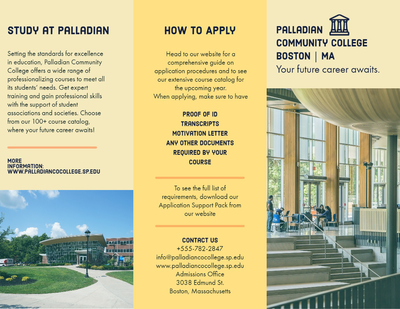 Take your brochure to the next level by changing any written content into infographic style designs. Infographics are effective in this example for several reasons – they can quickly capture a reader’s attention, they can better highlight critical ideas, and they can save space by using imagery paired with text. Explore ways you can pair the imagery of your brochure with infographics and use colors and typefaces to match the graphics to your brochure’s theme.