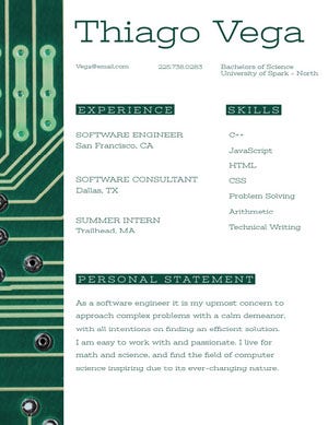 Have fun engineering an exciting resume. Take a standard-looking summary and add some excitement to it by adding colors, customizing typefaces, or incorporating a digital-themed graphic. You can also get creative with your skills. Rather than list out the programs you work with, consider using icons, logos, or progress bars.