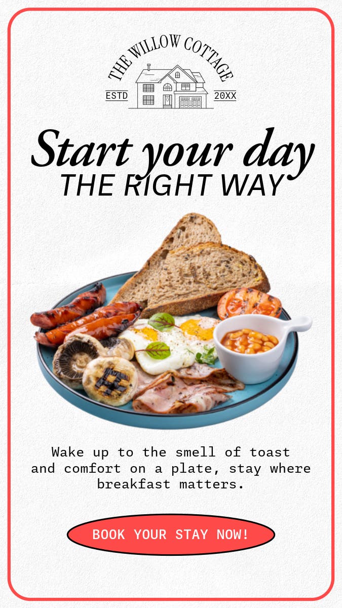 Encourage your customers to indulge in a proper brekkie, by coming up with an eye-catching menu for your full English breakfast. We have a range of Adobe Express templates to help you create the most mouthwatering advert for your food offerings, pulling in customers from far and wide.