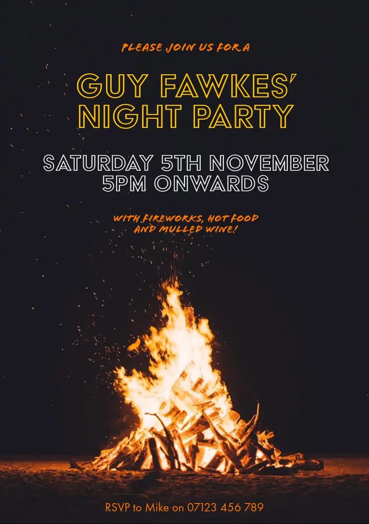 Start your project with “Remember, remember the Fifth of November” to set the historical tone for Bonfire Night events or promotional materials. It’s an impactful way to draw attention to the celebration and the story behind it.
