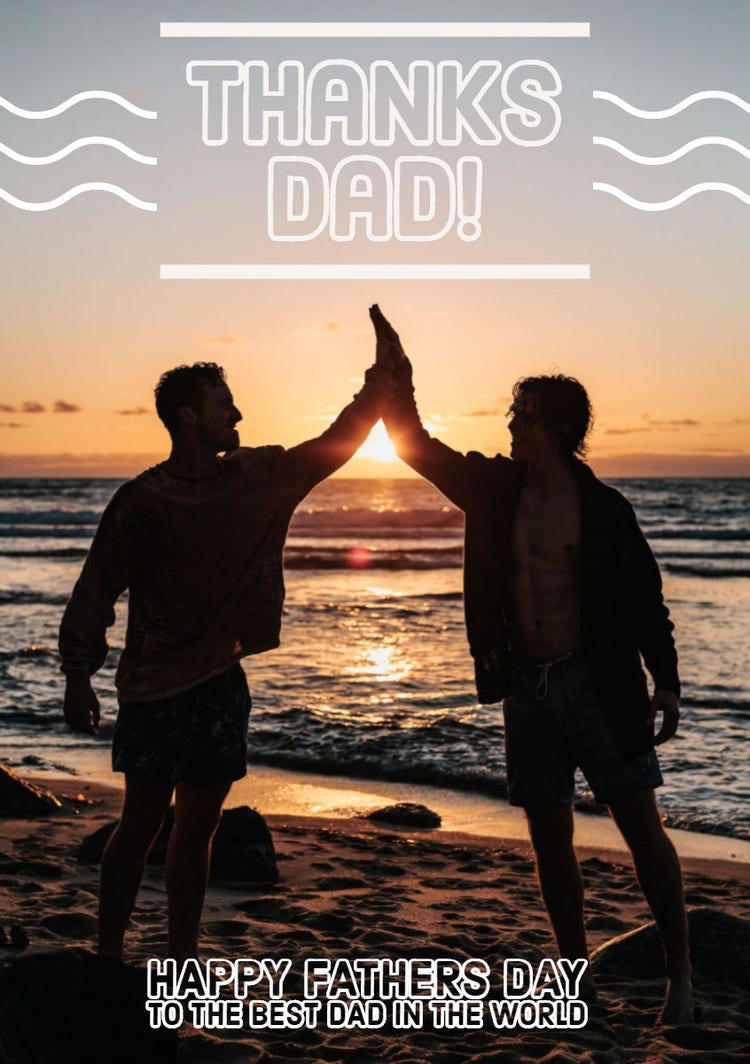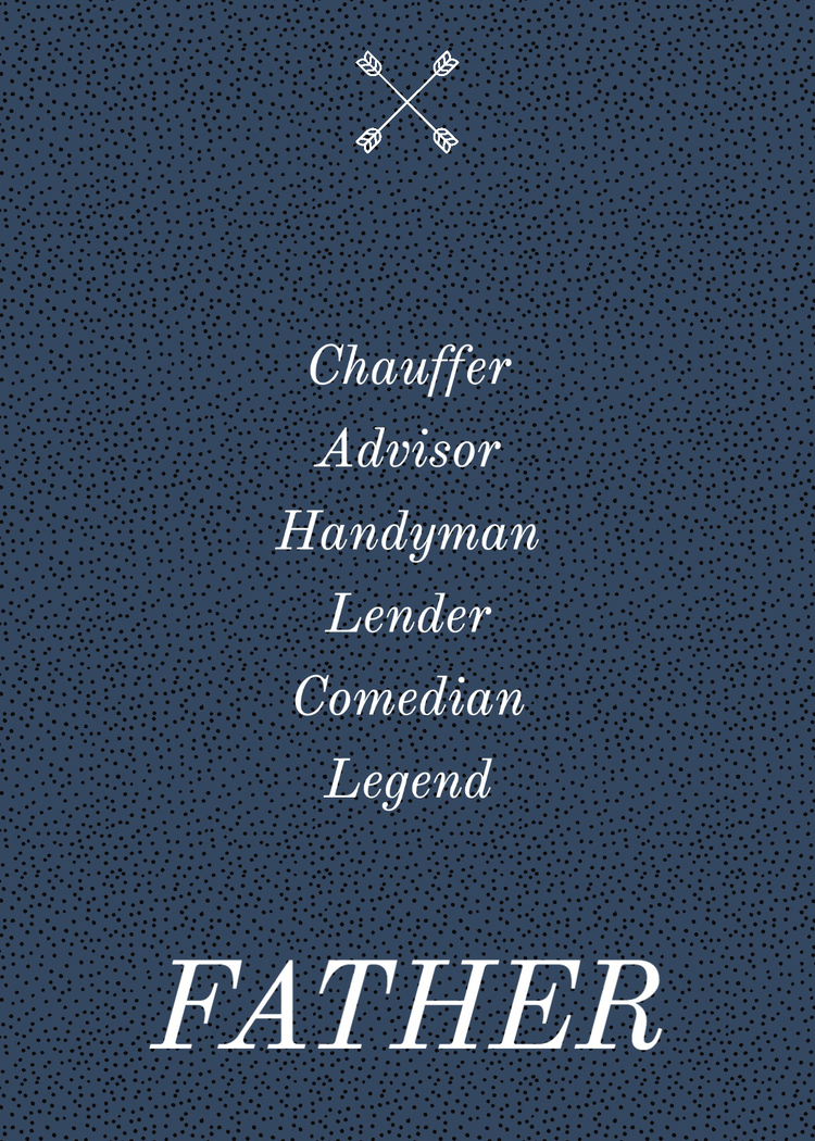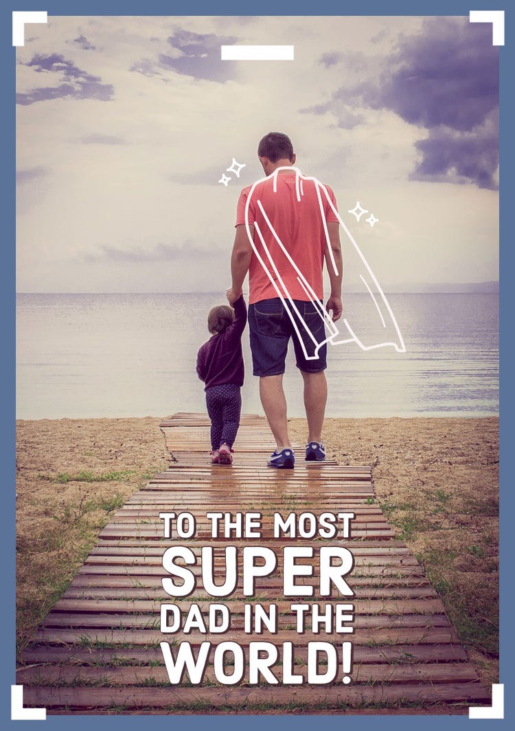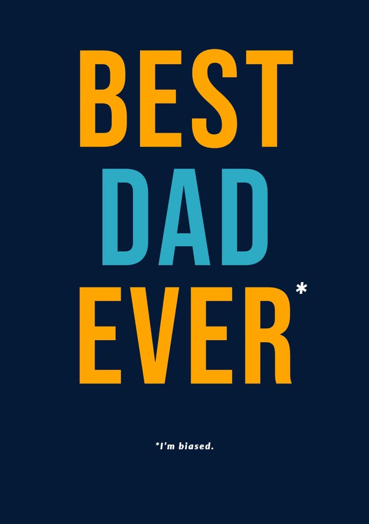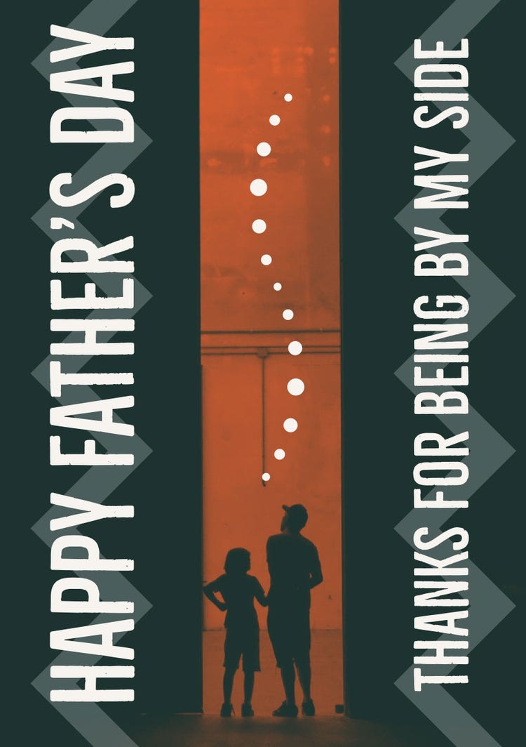 Father's Day only comes once a year, so it's essential to make the dads in your life feel special. Personalize your note by adding your recipient’s favorite things, including funny jokes, treasured pictures, and beloved memories. Instantly download your design to print out or share digitally to father-figures everywhere. Your custom greeting is sure to become a cherished keepsake.