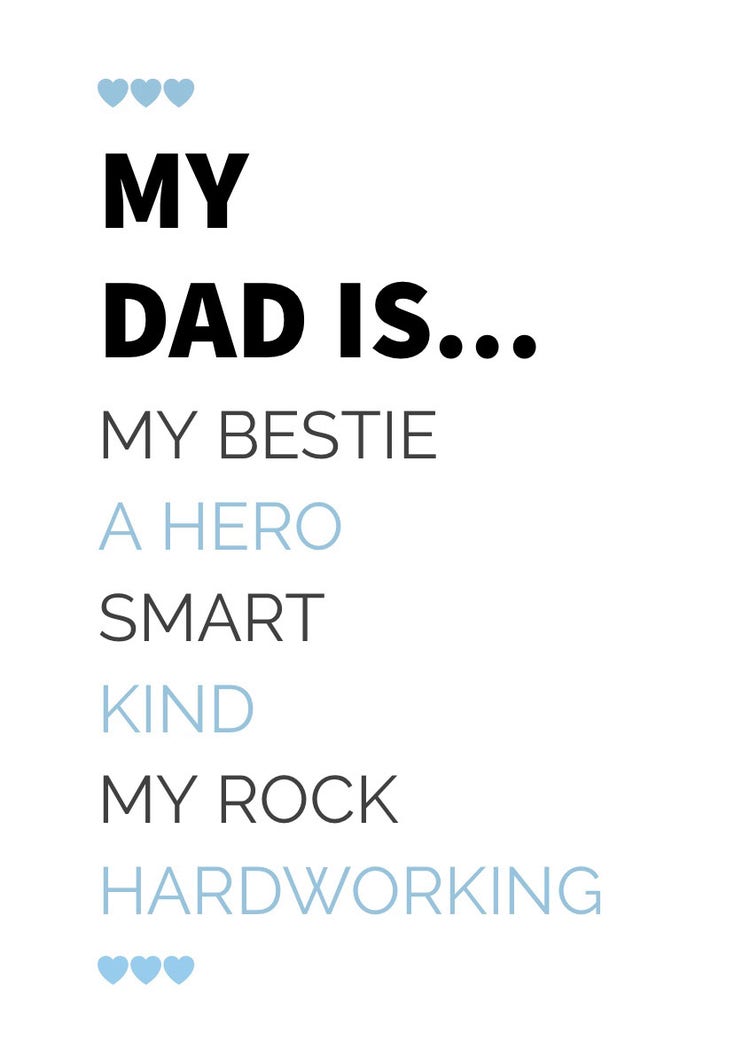 Dads mean so much to their kids. They are our providers, protectors, and the most fun to play with. Send your dad a loving message to let him know how much he truly means to you. Daughters and sons of all ages can use these customizable templates.