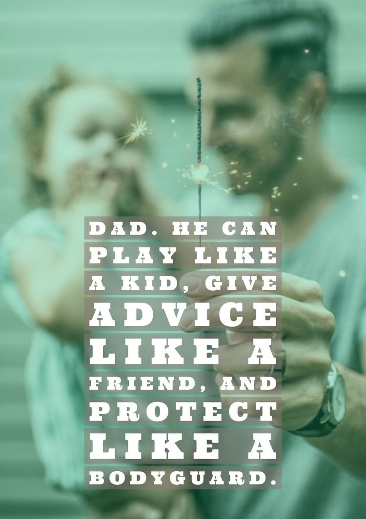 - Dad: He has the playfulness of a child, the wisdom of a friend, and the protective instincts of a bodyguard.