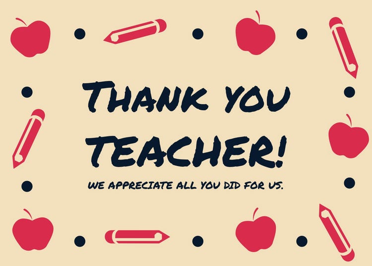 - "Your dedication to teaching and inspiring us makes all the difference. Thank you for being an amazing teacher."