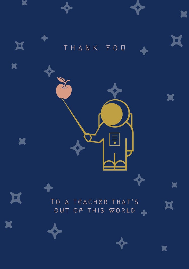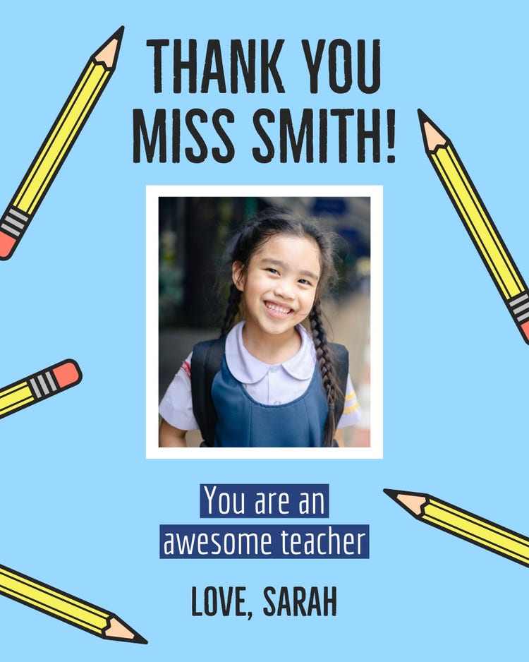 Give a teacher a personalized card that shows your appreciation for all their help throughout the school year. Create a generic card that you can print out and give to all your student’s teachers, or make a custom card for a specific teacher. Leave your signature touch on your card with handpicked imagery, fonts, and a meaningful message.