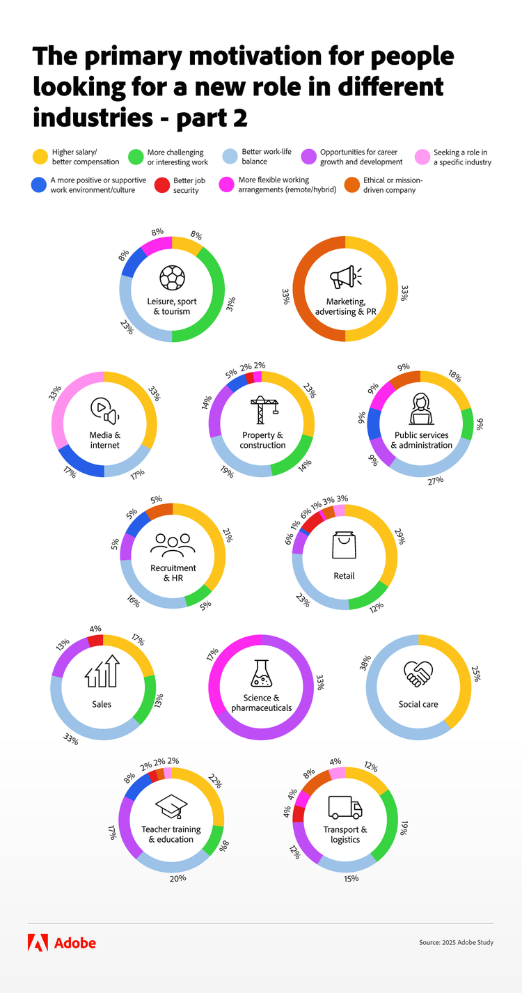 To better understand the current landscape, the team at Adobe Express surveyed 1,000 UK adults about their current career motivations and workplace preferences. We also asked business owners about the biggest recruitment challenges they’re currently facing.