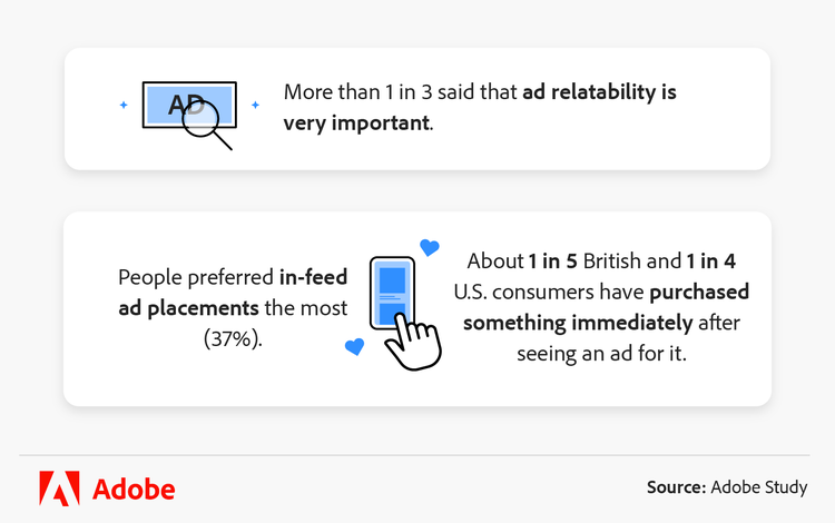 To uncover these trends and more, Adobe surveyed over 1,000 respondents across both markets. This article breaks down their preferences to show what works, what doesn't, and how brands can tailor their ad strategies. Whether you're targeting UK consumers exclusively or working across both markets, these findings offer practical guidance on crafting more engaging campaigns for your audiences.