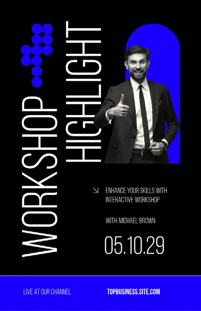 Adobe Express provides many examples of posters, including business workshop templates, along with the tools to easily edit your favourite poster design and put it to good use in your business.