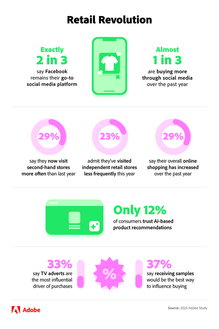 Retail Revolution is the result of a comprehensive national survey conducted by 3 Gem on behalf of Adobe Express. The survey polled 2,000 UK adults between 5/11/2025 – 12/11/2025.