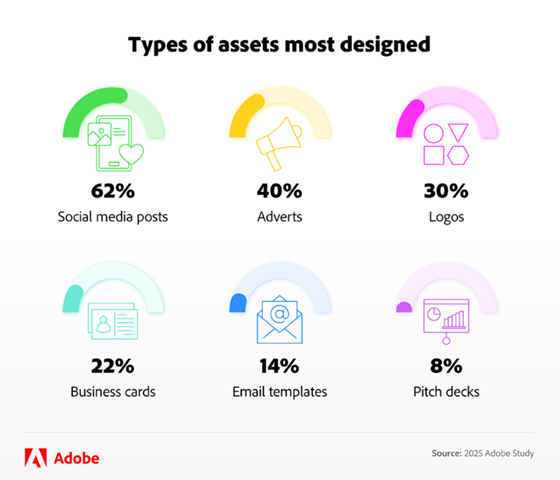 Our survey shows that social media content is by far the most common asset freelancers create for their brand (62%), followed by adverts (40%), logos (30%), and business cards (22%).