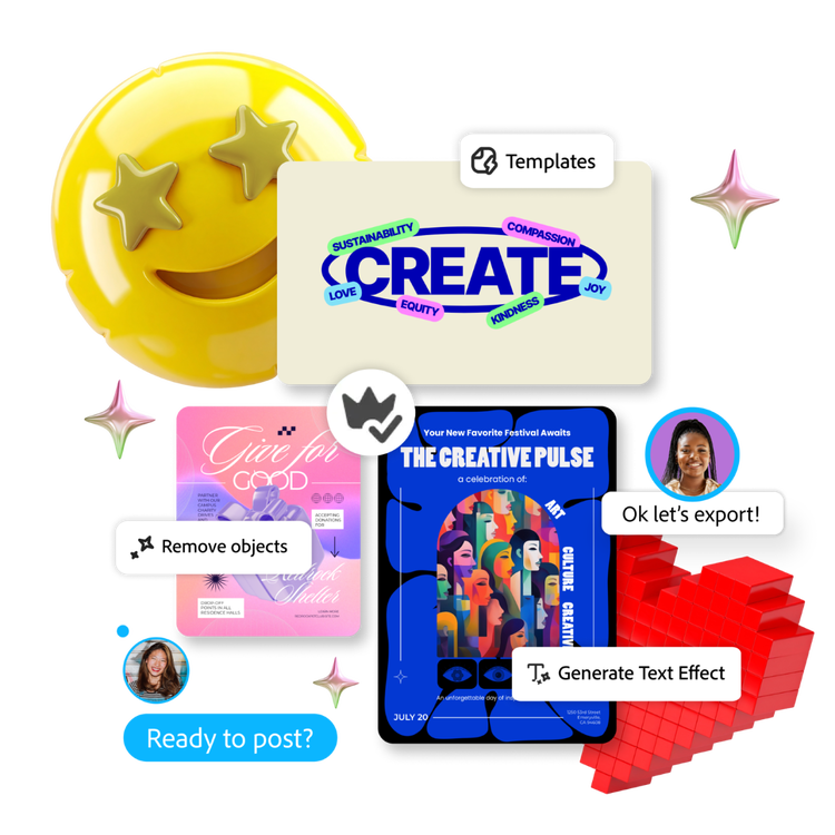 Whether you're a casual poster or social media is your side hustle, you can make eye catching content for every channel with Adobe Express. We've got you covered with video creation, collages and carrousels. Drag, drop, post.