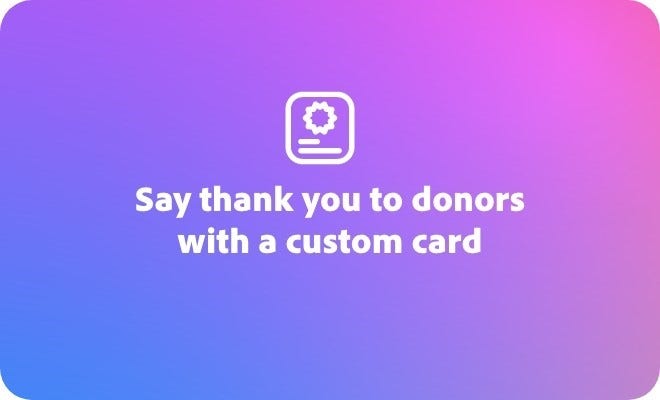 Say thank you to donors with a customised card.