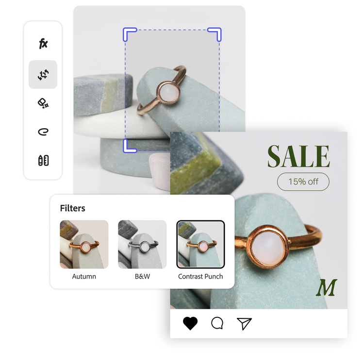 It's easy to deliver on time with tools and filters that turn complex edits into one and done. Enhance images, crop and apply filters in just a click.