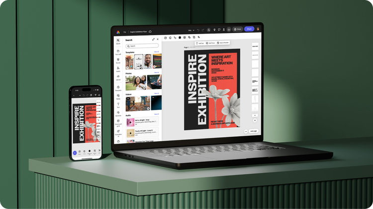 Create content seamlessly across your desktop browser and phone. Files stay synced so you can work wherever you are.