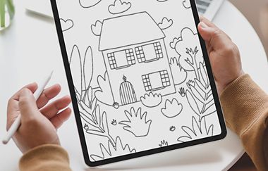 Your colouring templates are designed for Adobe Fresco, but they’re also compatible with Photoshop on iPad. Watch this short video to find out how to download the artists’ creations and get them set up in your chosen app.