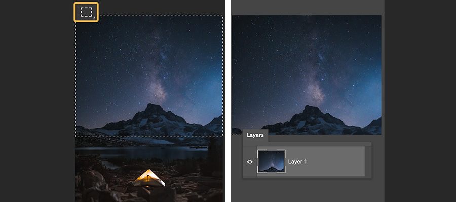 Use the Rectangular Marquee tool to make a rough selection around the sky. Then press Control+C (Windows) or Command+C (macOS) to copy it. Then create a new file (File > New) and use Control+V or Command+V to paste the layer.