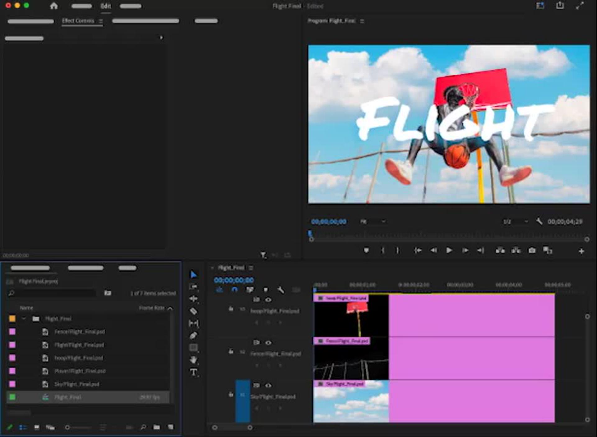 Expand the Bin in the Project panel to locate the Sequence Premiere Pro created from the layers in the PSD. Double-click the Sequence to add it to the timeline. The layer order of the Sequence matches the layer order of your PSD.