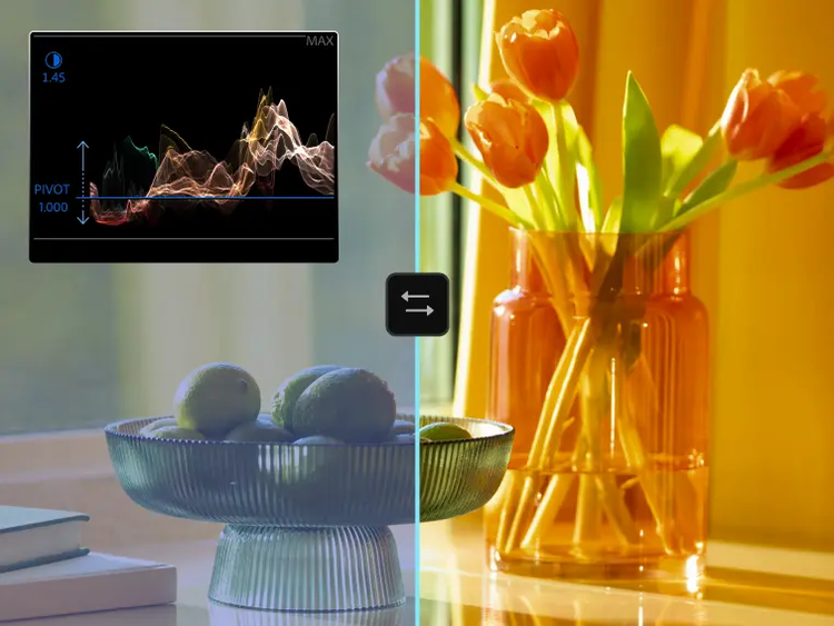 Tinh chỉnh độ tương phản và điểm xoay để tạo sự cân bằng mượt mà, linh hoạt giữa vùng tối và vùng sáng.