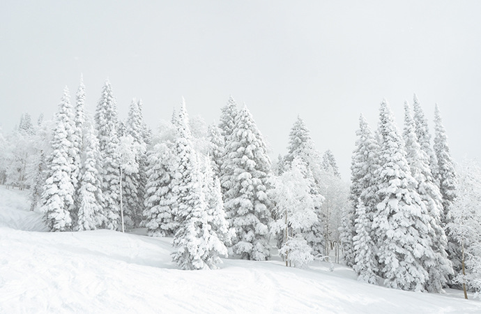 Peaceful nature shot of a silent, snow-covered hillside.